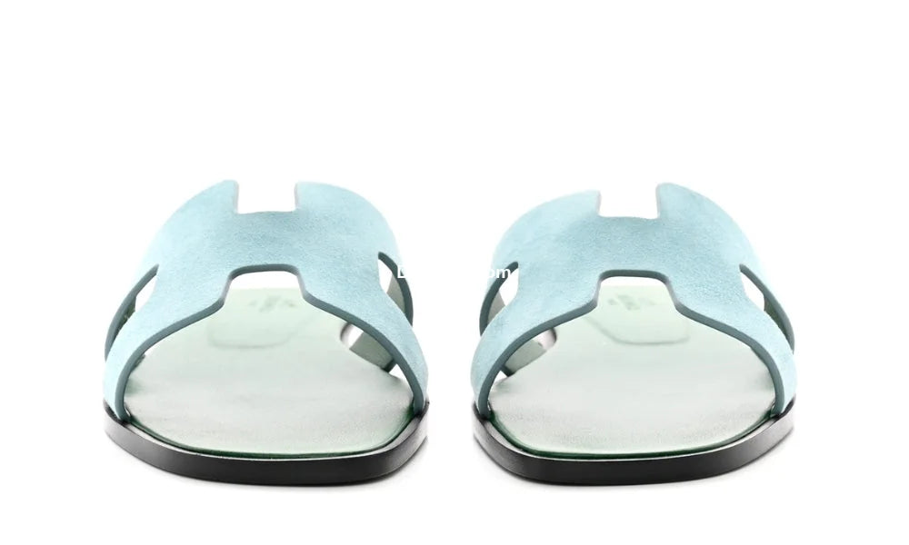 Herms Oran Sandal Vert D'eau Suede Goatskin