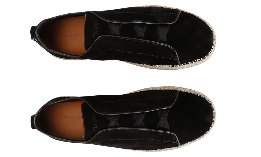 Zgna Suede Triple Stitch Espadrilles "Black"